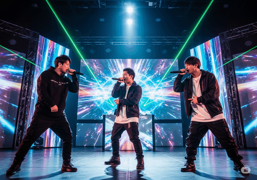 プロジェクションマッピングやレーザーを駆使したド派手なステージ演出と、俳優たちの魂がぶつかり合う本物のラップバトルは圧巻の一言。