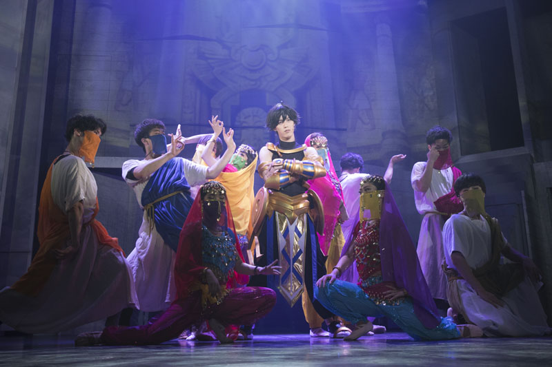 オジマンディアスの衣装は、上半身の、特に胸筋や腹筋のシルエットが分かりやすいシンプルなデザインですが、本田礼生は見事に鍛え上げられた肉体でこれを着こなしています。